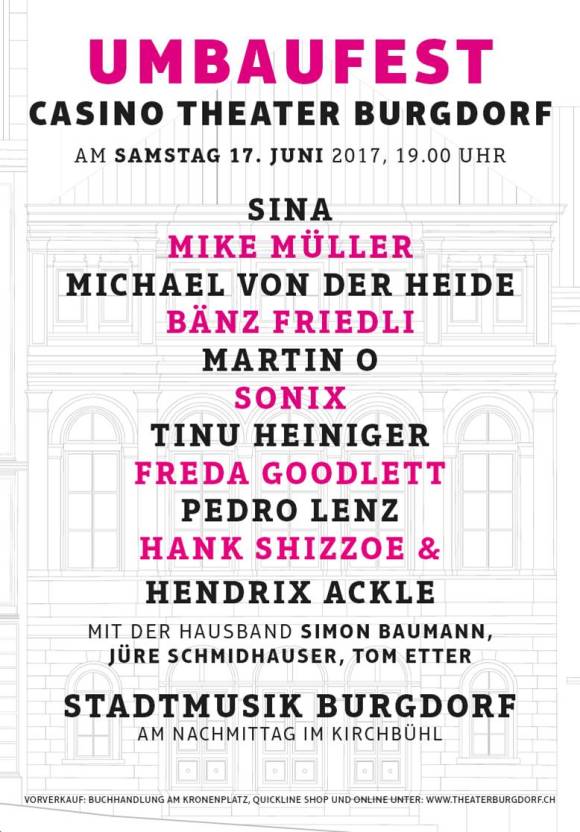 Wir freuen uns auf die nächsten Tage, spielen wir doch gleich zwei Konzerte: am Donnerstag, 15. Juni im Reberhaus in Bolligen (20:00, Tickets via mail@reberhaus.ch) und am Samstag, 17. Juni am «Umbaufest» vom Casino Theater im Kirchbühl in Burgdorf (ab 14:00, Eintritt frei).